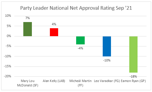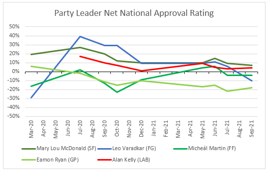 It has, however, significantly dented Leo Varadkar’s personal popularity, plunging him towards Eamon Ryan levels, as the majority of public blame seems to have been directed towards him. I doubt he’ll mind as it seems to have not really affected the party in any dramatic way. This makes some sense – as I’ve mentioned before, leadership approval is not a good predictor of party support, and Vardakar is in no danger of losing his own seat.