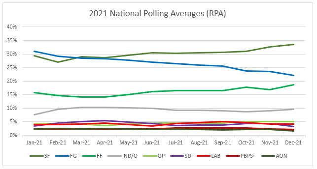 Overall, December has been a “trends continue” month elsewhere – Sinn Féin continue to stretch their lead and have demonstrated that recent numbers in Dublin are not an outlier. With Fine Gael support declining, they have opened a significant lead in the capital, even ticking slightly ahead of their GE20 numbers. That last part is important, as SF have consistently struggled to do in Dublin so even with FG on the downslide.