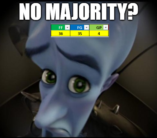 The projections this month have the combined government (Fine Gael, Fianna Fáil and Green Party) total at 75 seats. That’s the lowest I’ve ever had it at. Although not the first time dipping below a majority, 5 seats below puts them in a really awkward (and, to me, funny) situation – and that increases to 6 seats, if they wish to hang onto having the Ceann Comhairle. There have been CCs before from non-government parties (most recently in 1997-2002), so ditching it could be viable, if not preferable.